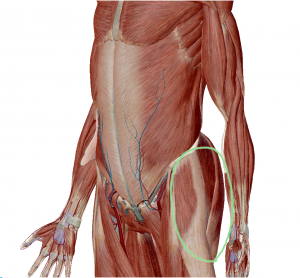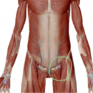 大殿筋、大腿筋膜張筋と中殿筋の境界部をリリース