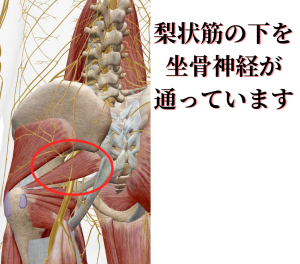 坐骨神経の圧迫が起こる一番の原因は、梨状筋の【短縮】【滑走不全】です。